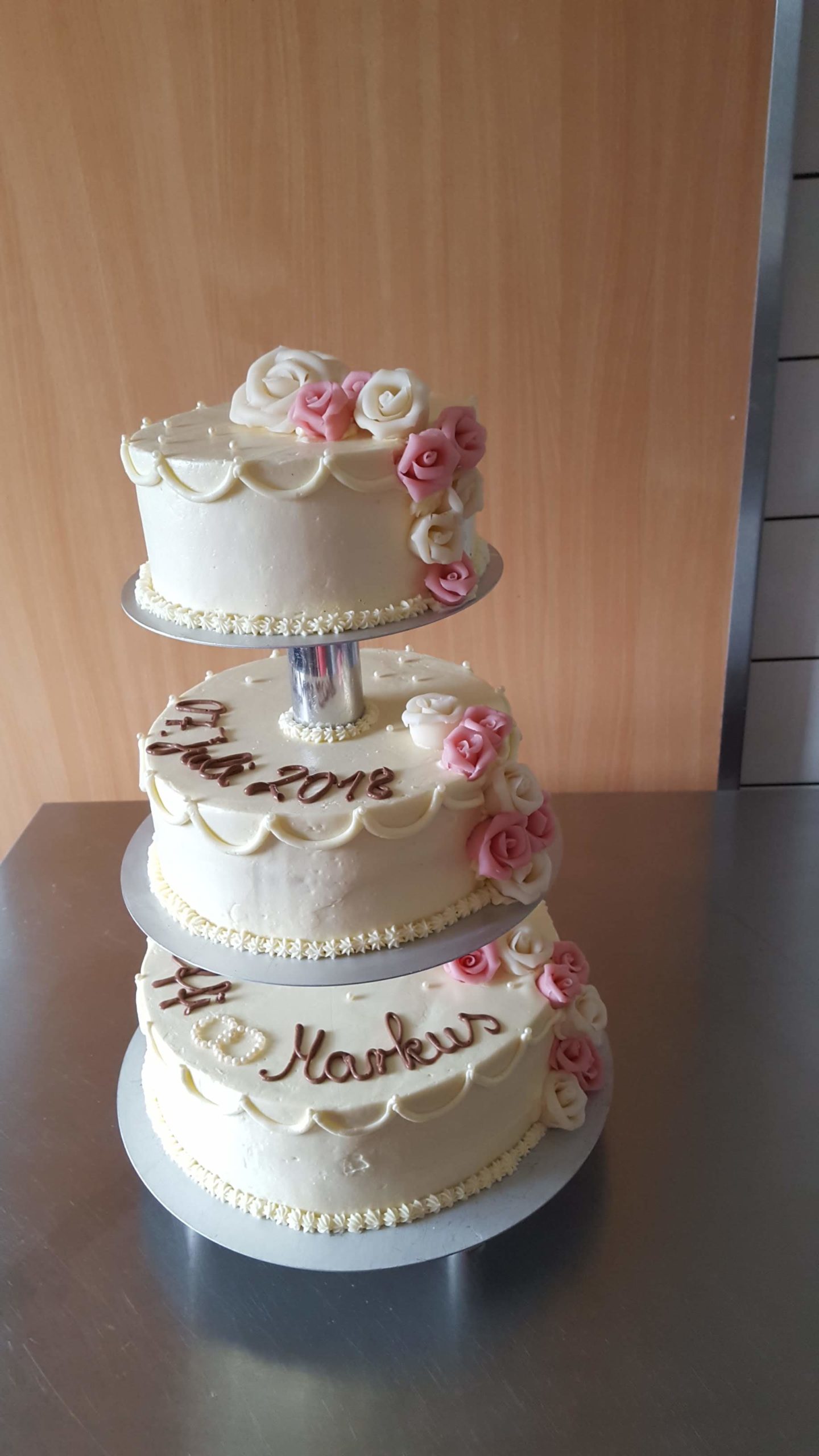 Unsere Feinbäckerei ist seit einigen Jahren auch Spezialist für Hochzeitstorten. Hierbei bieten wir nicht nur ein festes Sortiment an, sondern sind auch immer offen für die Wünsche und Ideen unserer Kunden und gestalten jede Hochzeitstorte individuell.